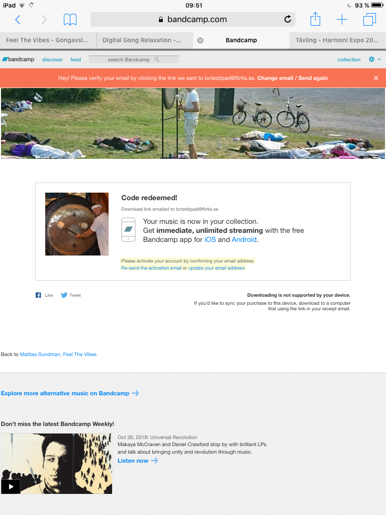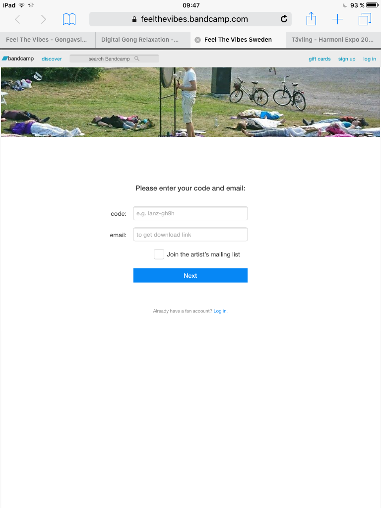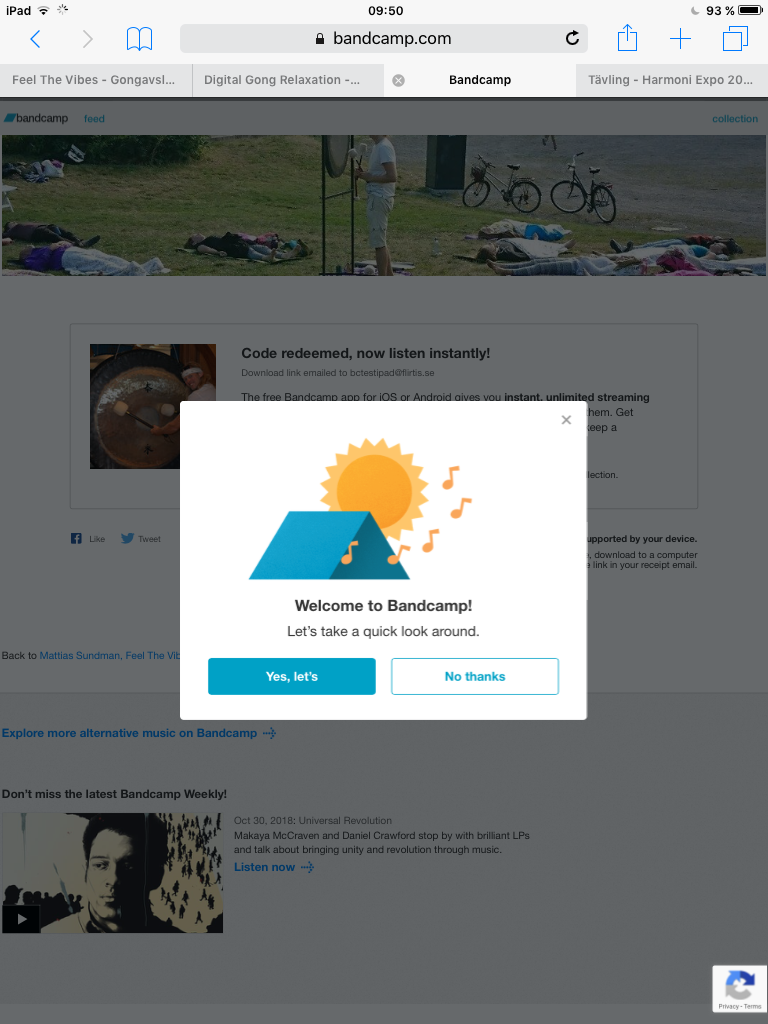 Inloggad i Bandcamp Appen