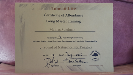 Jag gick dessutom en 9-dagars kurs i "Gong Master Training" i Polen. Som ledde till att jag blev utbildad Gongmästare.
