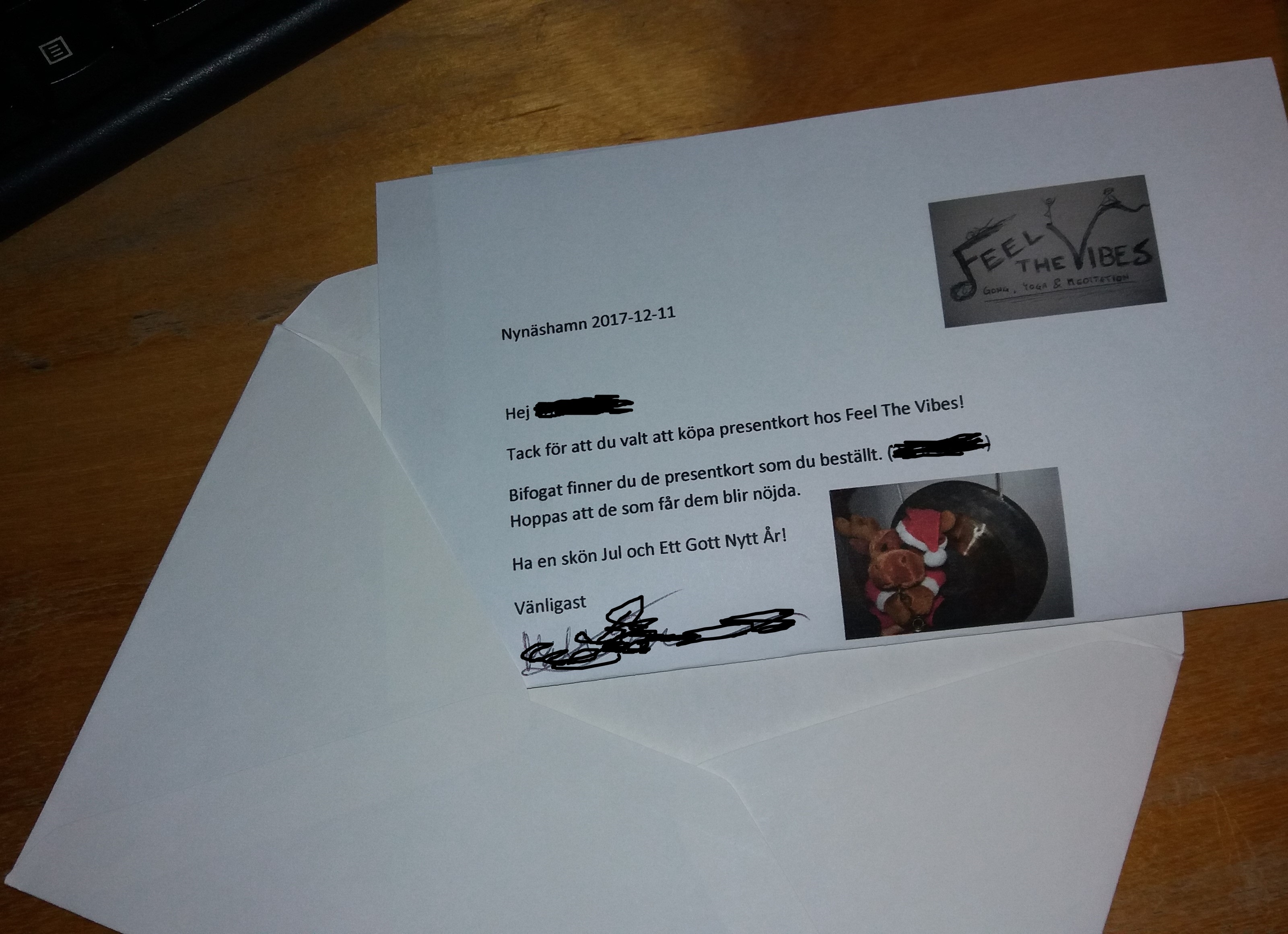 - Maila till: presentkort@feelthevibes.se eller sms:a till 070-513 18 87.